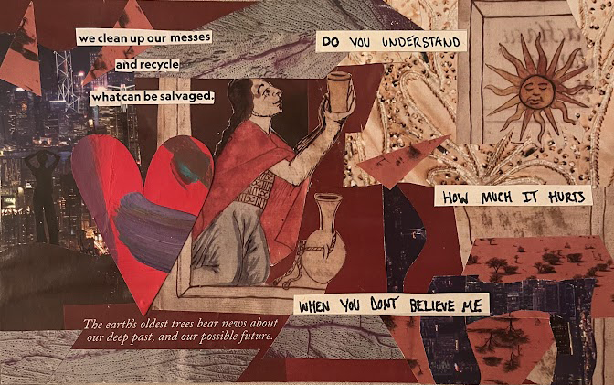 This collage expresses the healing that is being loved despite the mistakes I've made, how the person I am now is not someone the person who hurt me would recognize, and the love that remains after a breakup, the healing that is loving.